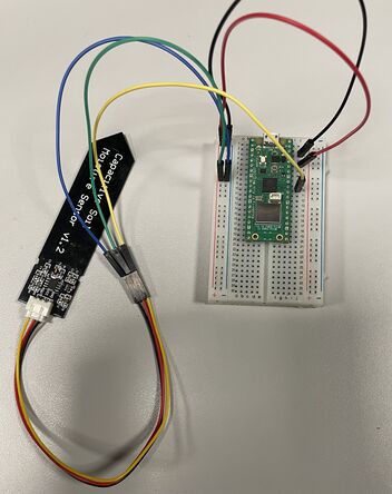 Nun können wir das gelbe Kabel (AOUT) mit dem Pin 31 (GPIO26 ADC0) des Mikrokontrollers verbinden. Die Pins 31, 32 und 34 sind besonders, da sie analoge Werte einlesen können. Diese können wir später in Prozent-Feuchtigkeit umrechnen.