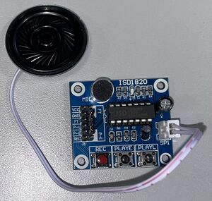 Über das weiße Kabel können wir dem Lautsprecher-Modul ein Signal geben, die aufgenommene Tonspur abzuspielen.