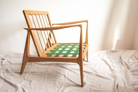 This Lounge Chair has been planed using a Design from Dylan Barfield. I ordered templates and chairs by hiring a 3D-Desinger from Taiwan from freelancer.org. After optimizing the plans, I printed templates using our lasercutter, and built the chair in our comakingSpace. I found a detailed description of parts of the build process I found on youtube.